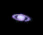 These shots were taken 9 September 1999 at f/10. The detail is scant as usual, but about as much as you can expect at prime focus. Each pixel is about 10 um, representing about 1.6 arc seconds at 1250 mm. Even the Great Red Spot is only about 8 arc seconds wide, so it's naturally hard to see any cloud details in these images. The Saturn shot only reveals the planet's shadow on the back edge of the rings.