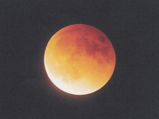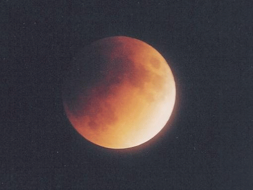 The west coast of the U.S. got a relatively good view of a total lunar eclipse on the evening of 20 January 2000 (21 January 2000 UTC). The moon passed through the southern portion of the earth's umbral shadow, which is why the two totality shots show a significant color fringe and are brighter along the southern edge than the northern.