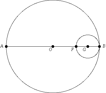 In the limit, as PQ and P'Q' both move toward AB, the circles S and U converge to the circle G, which has radius 1/4, and intersects AB at F and B. (See Figure 5.)